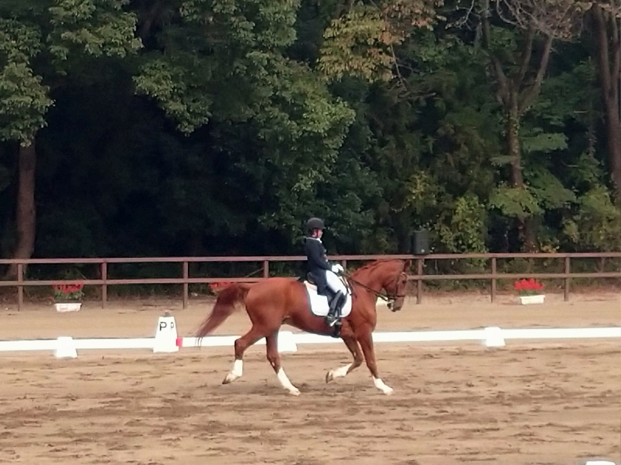 そのまま駈歩を続けて、10mの半輪乗り、そして反対駈歩。爆走している割にはスムーズに出来た気がする。